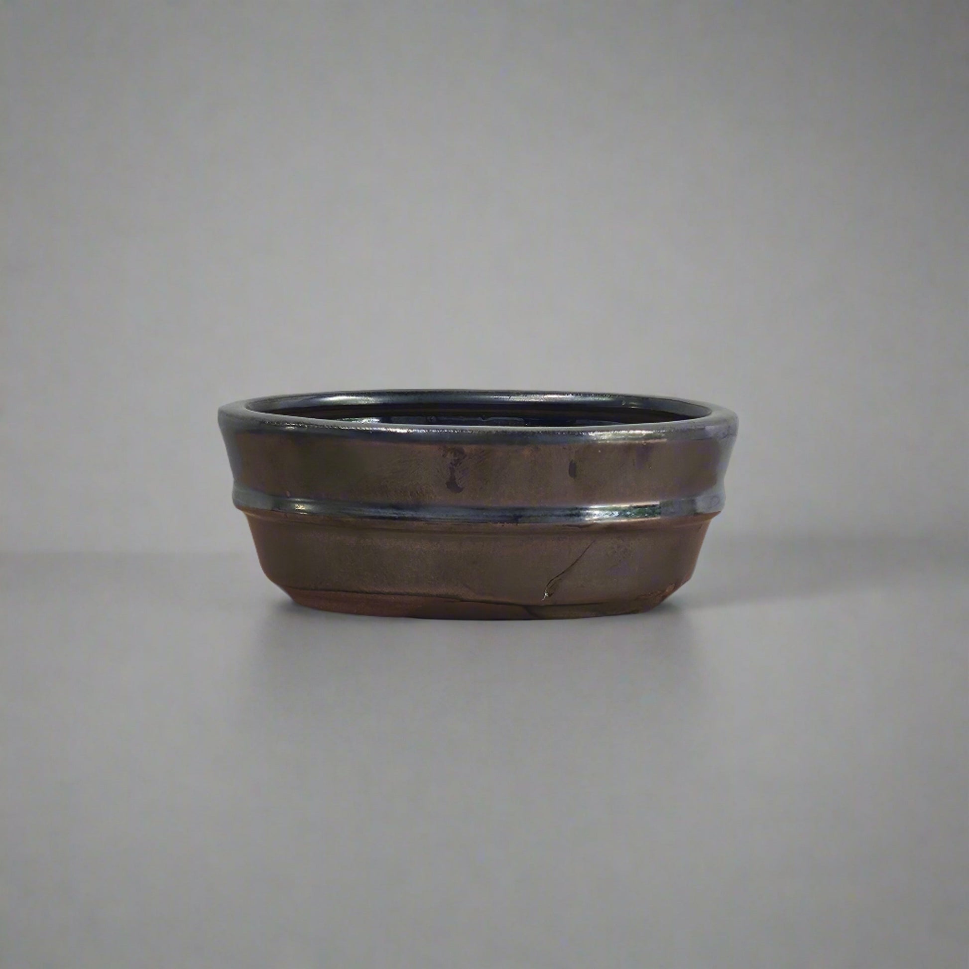 12cm Glazed Bonsai Pot | Oval | 12cm x 9cm x 5cm | Silver