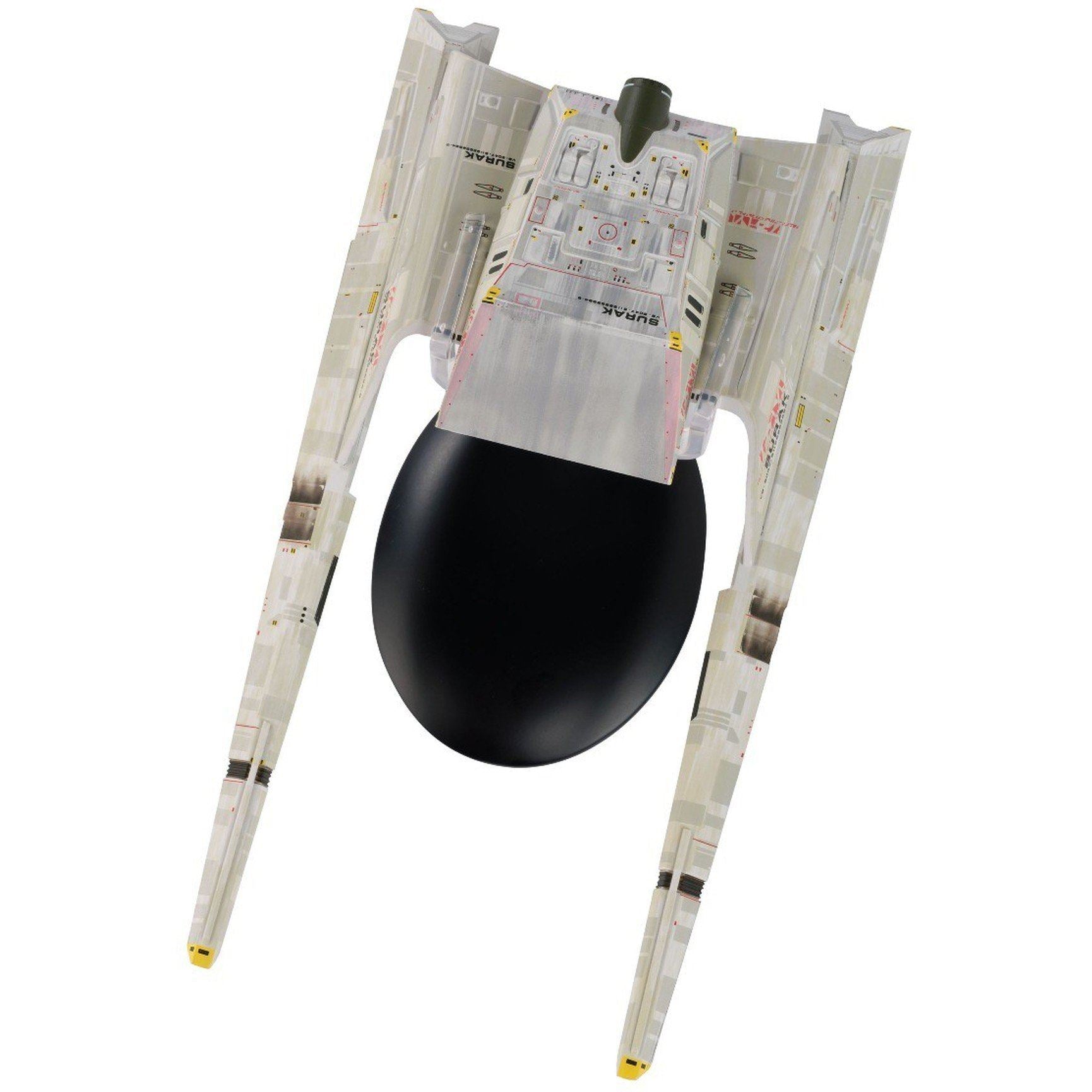 Designed for Star Trek: Motion Picture, Vulcan Long Range Shuttle Ship completed the crew on the Enterprise by bringing its first officer Spock! The 21st special edition of our Star Trek Official Starships Collection is the powerful Vulcan Long Range Shuttle Ship that was designed to make long interstellar journeys at high warp speeds. During the V'Ger crisis, Spock used this shuttle to join his crew on the newly-refitted Enterprise. Named Surak after the father of modern Vulcan Society, it had a typical design of the 23rd century. Your die-cast Vulcan Long Range Shuttle Ship model recreates the shuttle as seen in Star Trek: Motion Picture. It captures the design by Andrew Probert with the actual shuttle being placed on top of the warp nacelles, so the shuttle could dock with the Enterprise.