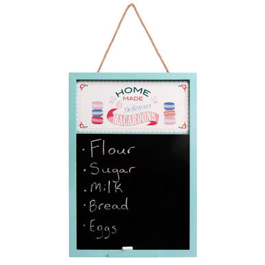 The Amelie chalkboard is a quirky way to post reminders, shopping lists, recipes and even house rules. Made from tough and lightweight MDF, it is easy to display on the wall thanks to the twining rope. The rope's natural colour complements the light blue