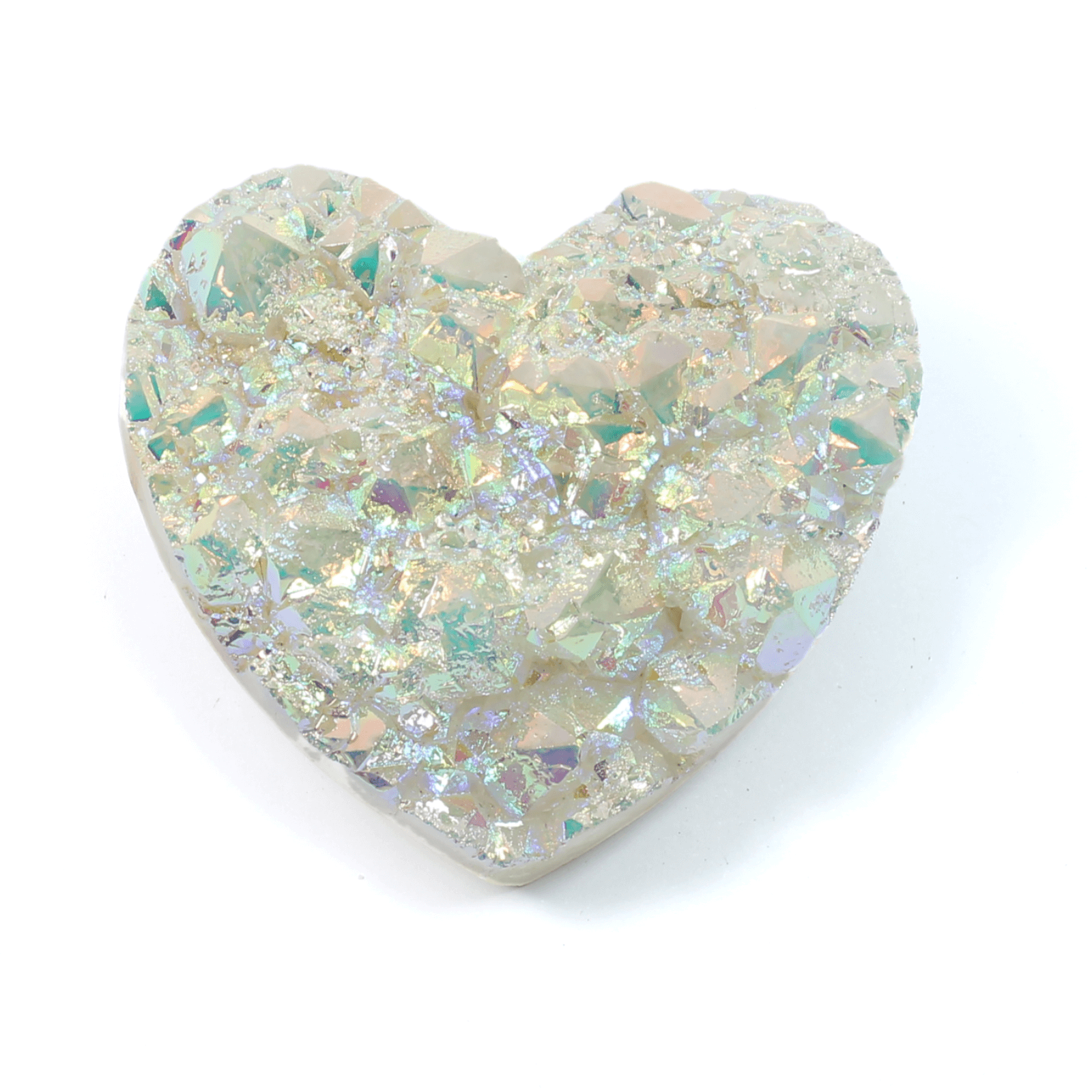 This beautiful Angel Aura Heart is a gentle and uplifting crystal, shimmering with soft iridescent colours that catch the light with every movement. Created by bonding clear quartz with precious metals such as platinum and silver, it carries a high, angelic vibration believed to promote inner peace, spiritual connection and emotional healing. The heart shape enhances its loving energy, making it a thoughtful gift or a soothing addition to any sacred space. Often used in meditation or simply kept nearby, this crystal inspires calm, positivity and a deeper sense of harmony within oneself and the surrounding environment.