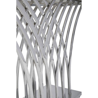 Bring refined impact to your hallway or living space with the Arenza Black Marble And Silver Console Table. Designed to command attention from the first glance, the Arenza console pairs a deep black marble tabletop with a sculptural silver base to create a striking focal point.