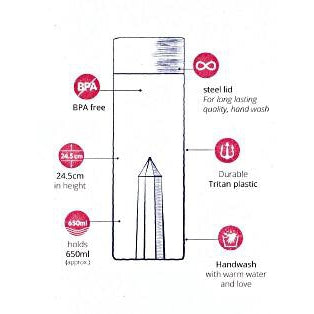 Each bottle comes in a lovely presentation box and are approx. 24.5cm in height. The bottle has a steel lid and is made from BPA free durable tritan plastic. The crystals in the bottles can be charged as per your normal method. Note - these bottles are not dishwasher proof and as such should be hand washed only.