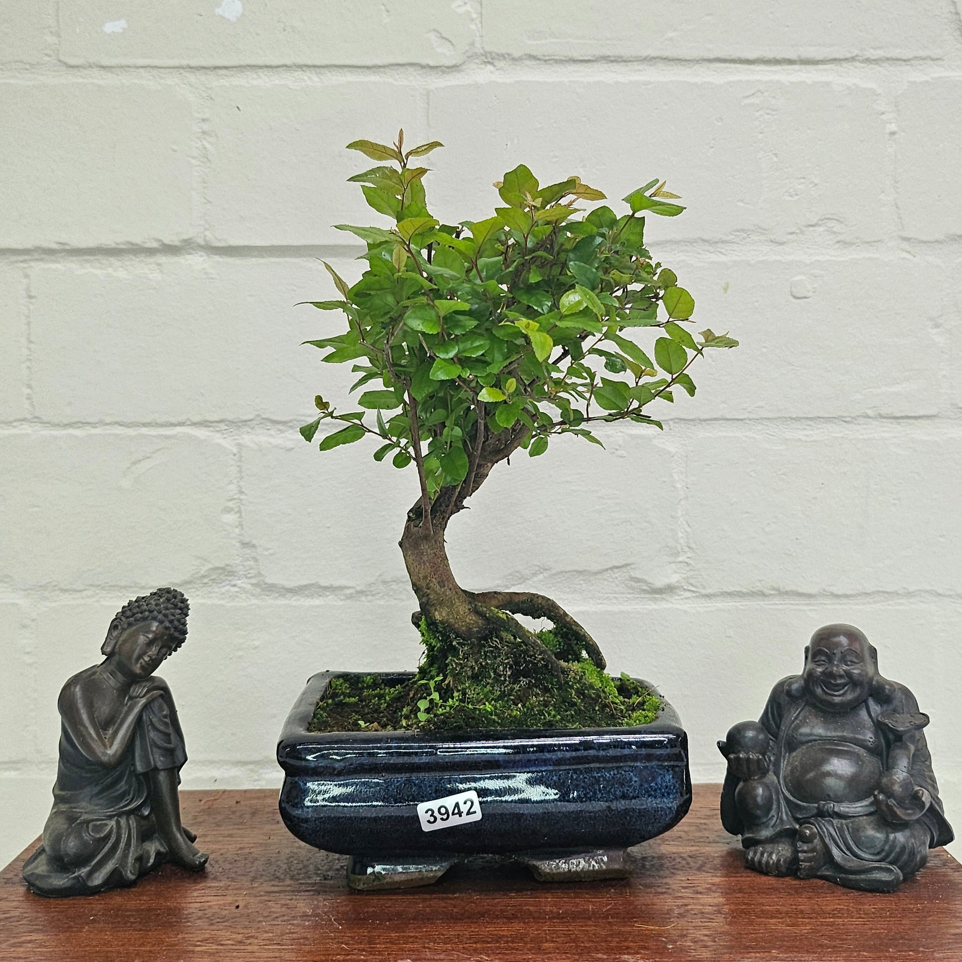 Adding to the striking beauty is the changing appearance of this Bonsai tree over the course of the year. The foliage has hints of rusty red, which turns to glossy green. If left to blossom, the small white flowers that appear in the canopy transform into tiny purple plum-shaped fruits.