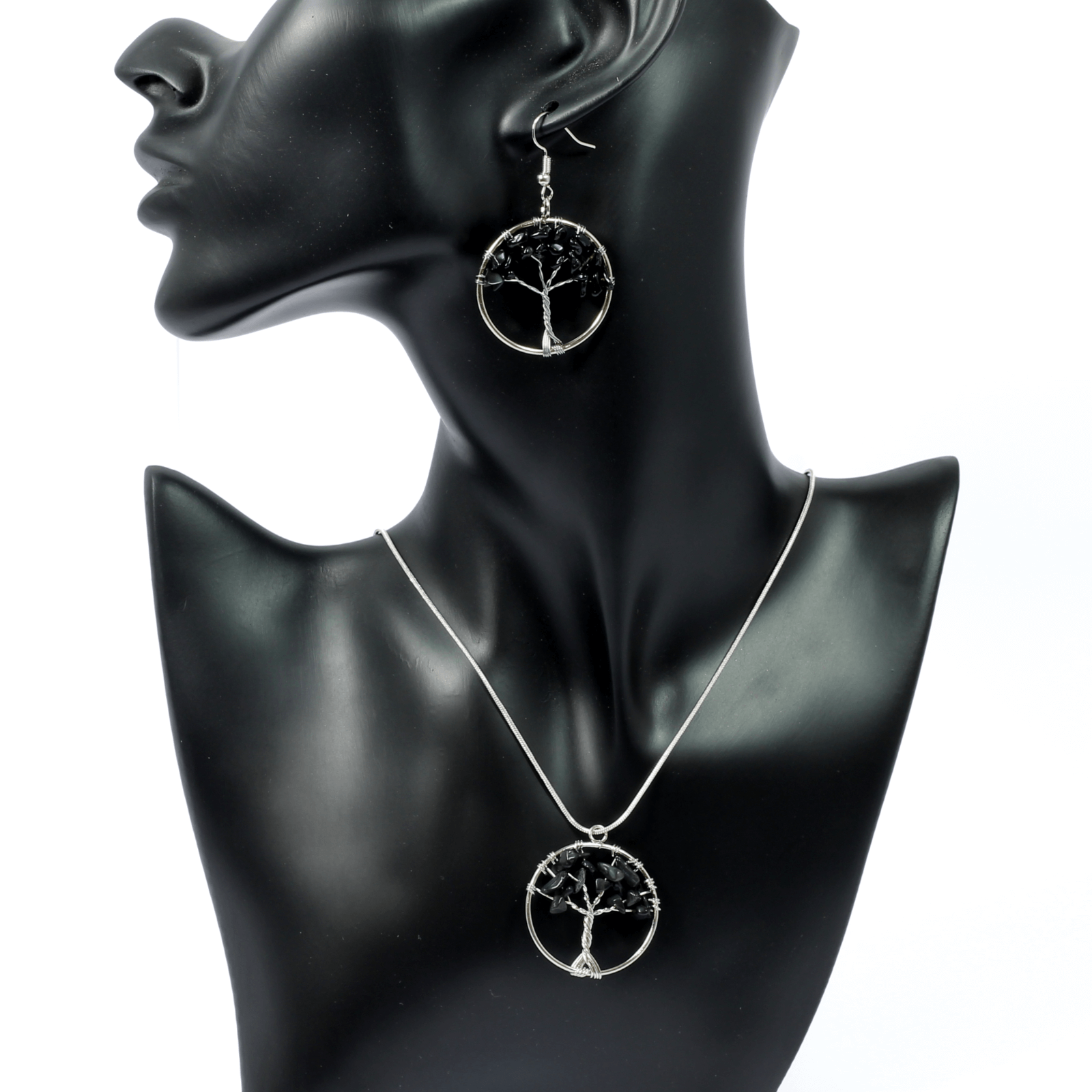 Black Obsidian Tree Of Life Jewellery Set (Necklace & Earrings)