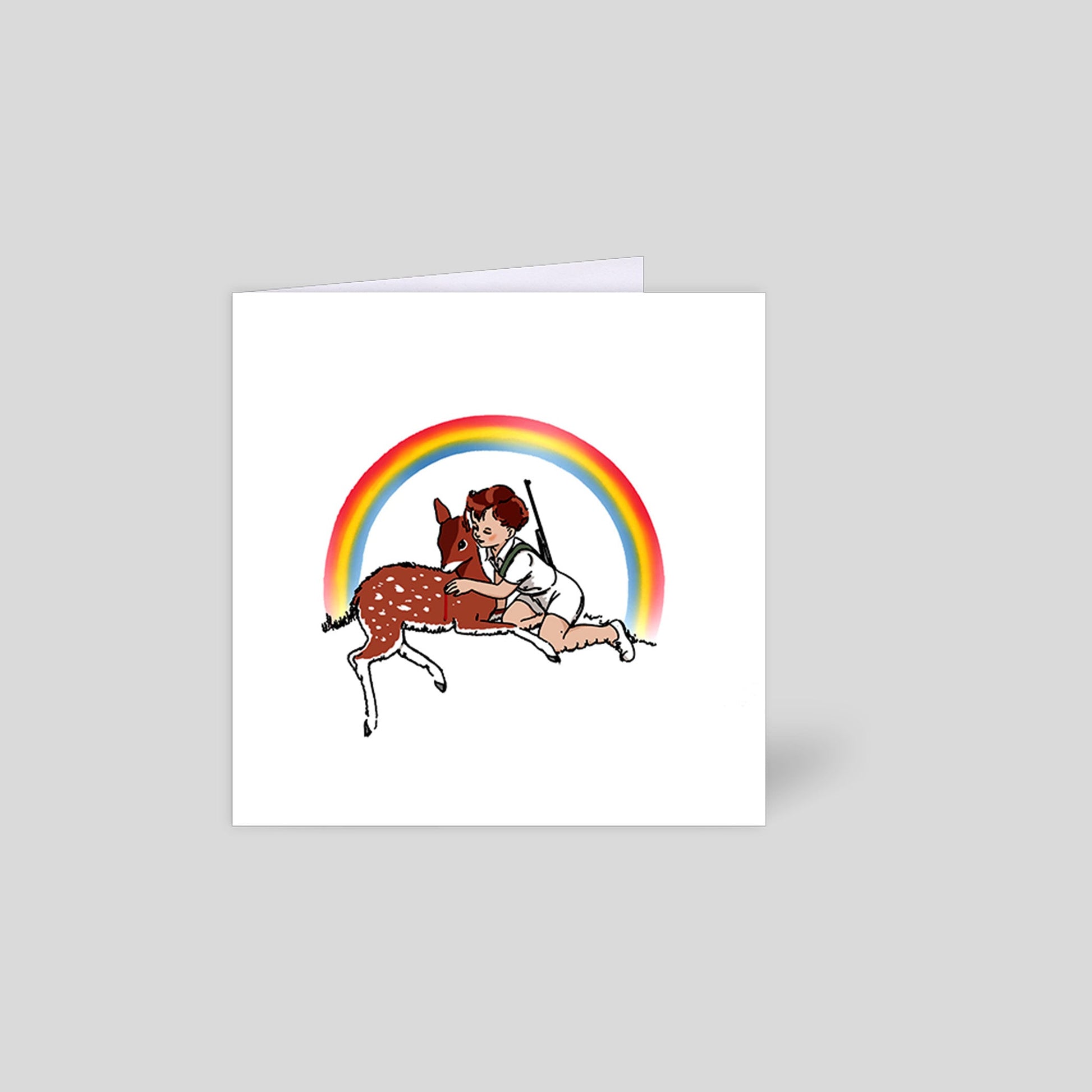 Ceal Warnants' greetings cards play on quaint British illustration pastiches, mixing them up with darkly comic modern insignia, from Nikes to the middle finger.