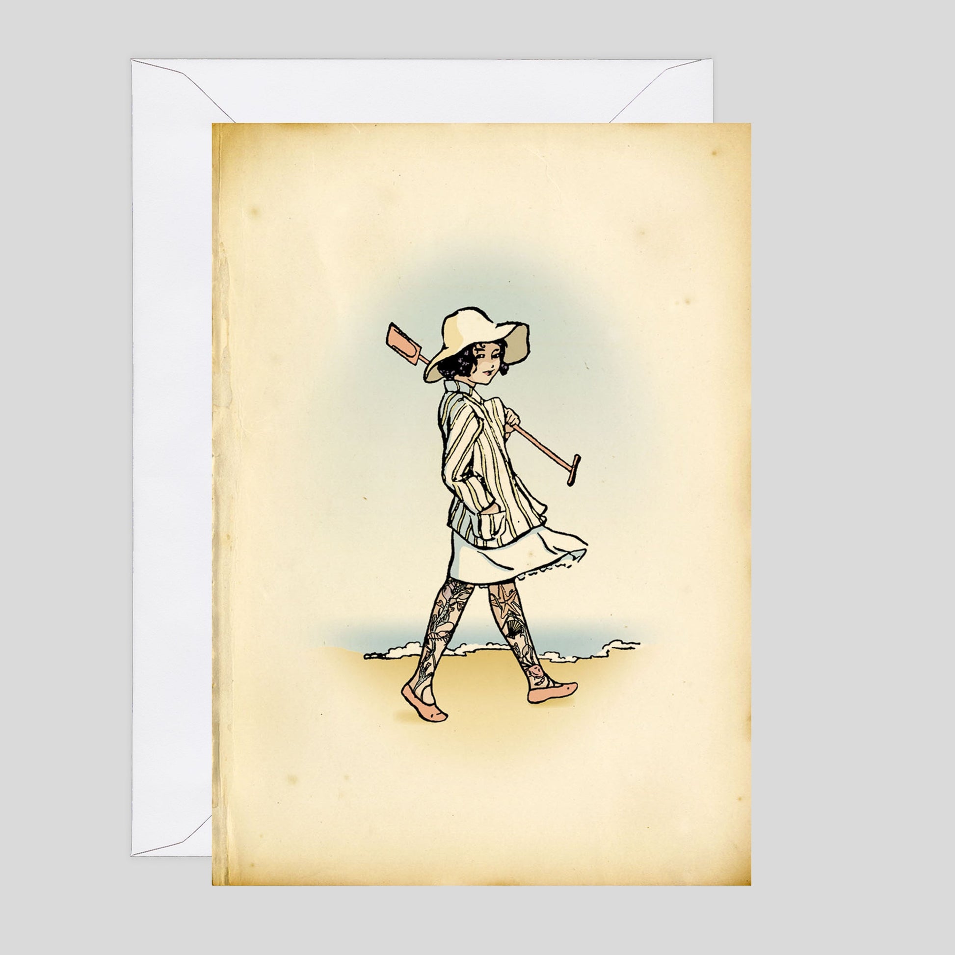 Ceal Warnants' greetings cards play on quaint British illustration pastiches, mixing them up with darkly comic modern insignia, from Nikes to the middle finger.