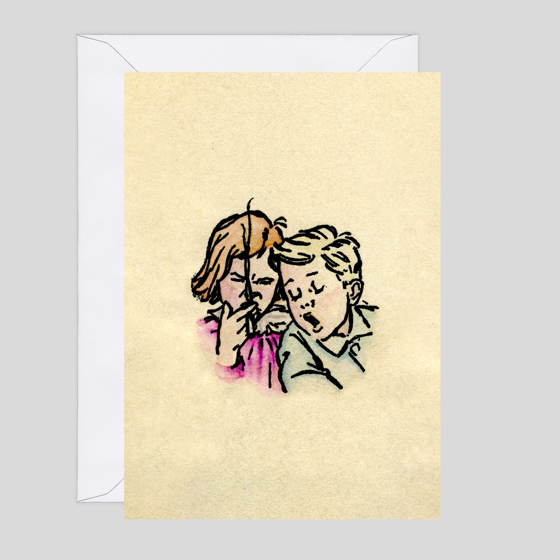Ceal Warnants' greetings cards play on quaint British illustration pastiches, mixing them up with darkly comic modern insignia, from Nikes to the middle finger.