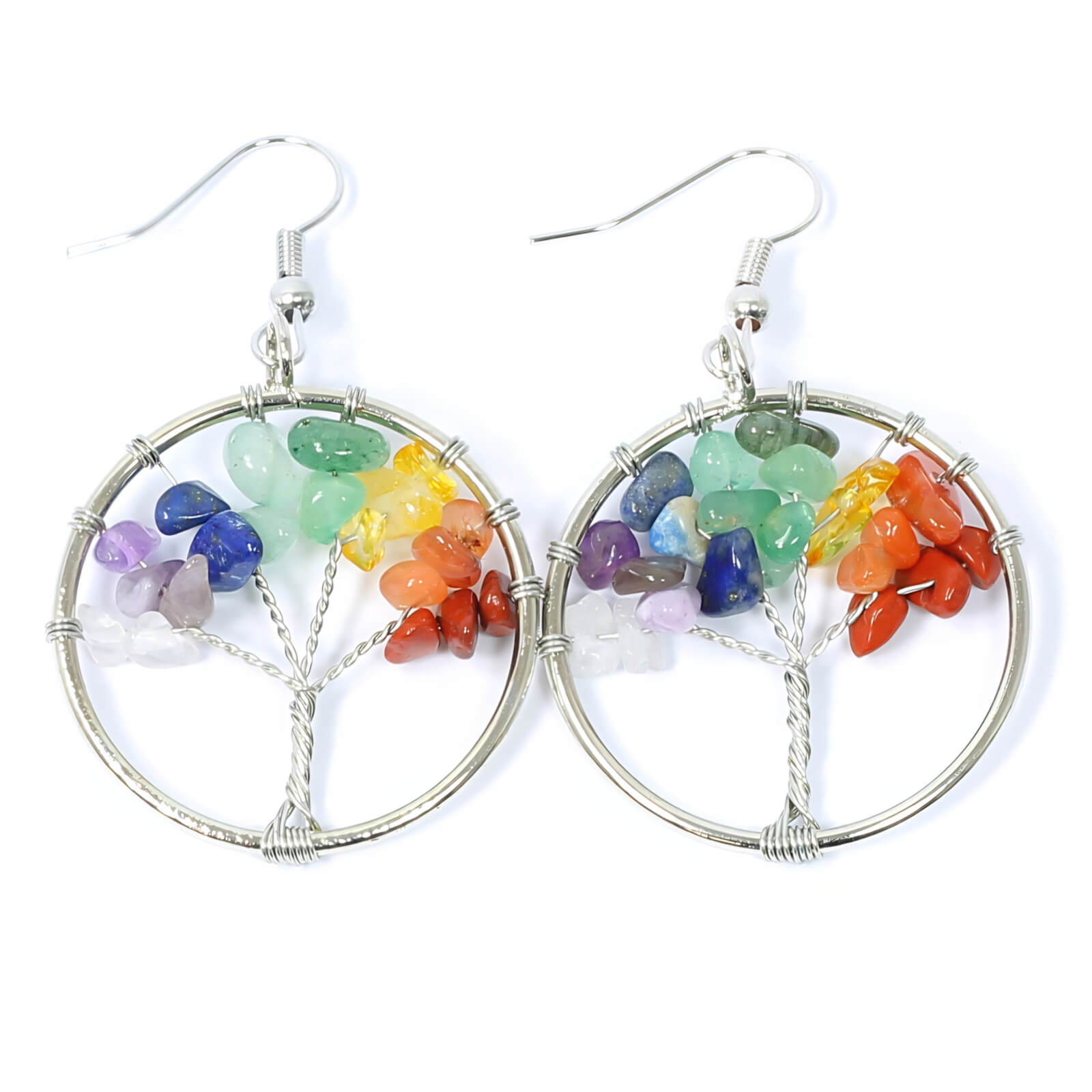 These Chakra Tree of Life Earrings feature radiant, transparent clear quartz gemstones set in a stunning Tree of Life design. The Tree of life symbolises connection and togetherness, reminding you that you are never alone and combined with all 7 chakras, these brings feeling of balance into your life too