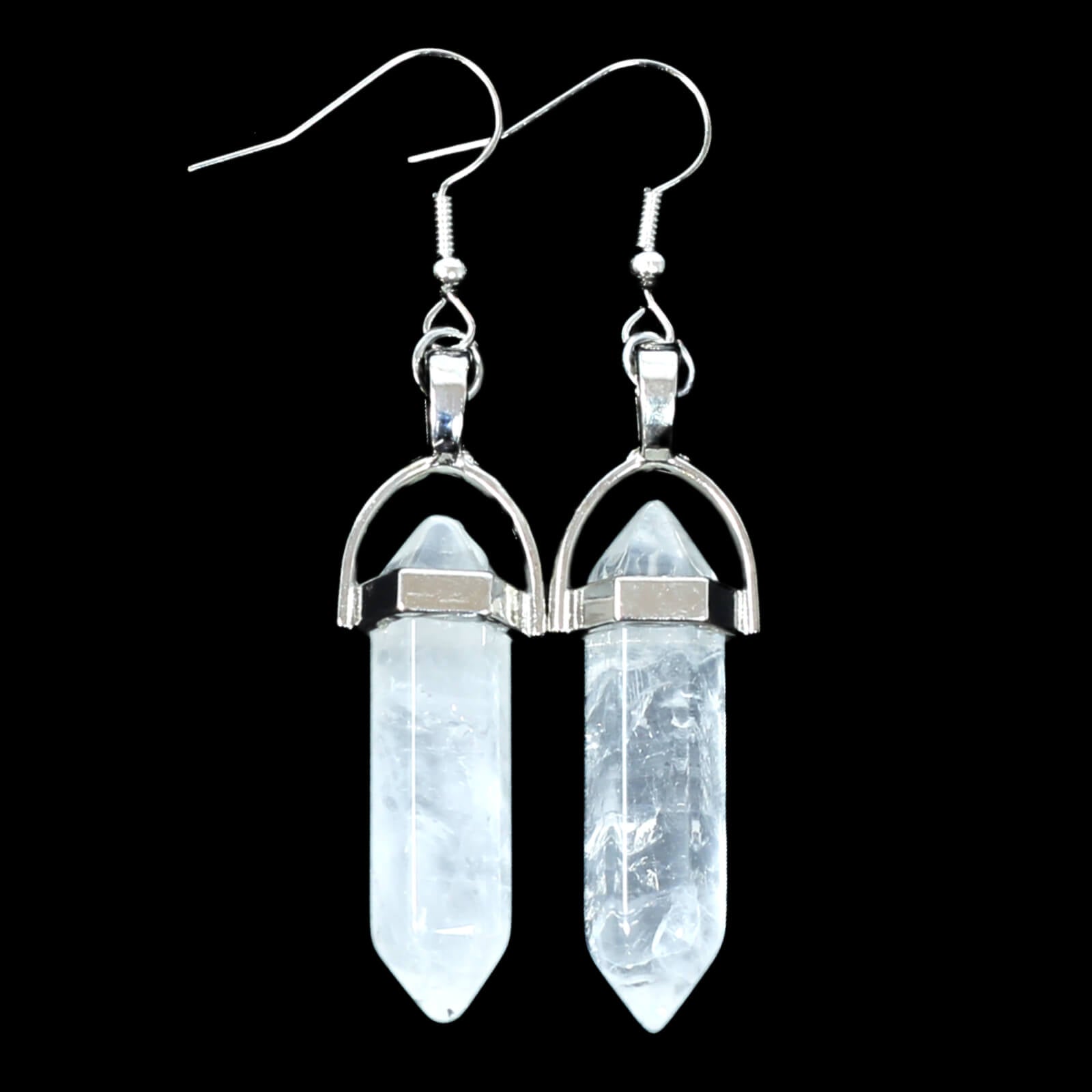 These are stunning crystal point earrings made with Clear Quartz crystals. The luminous, transparent beauty of clear quartz is believed to amplify energy, enhance clarity, and promote balance, making these earrings a perfect accessory for everyday wear or special occasions.