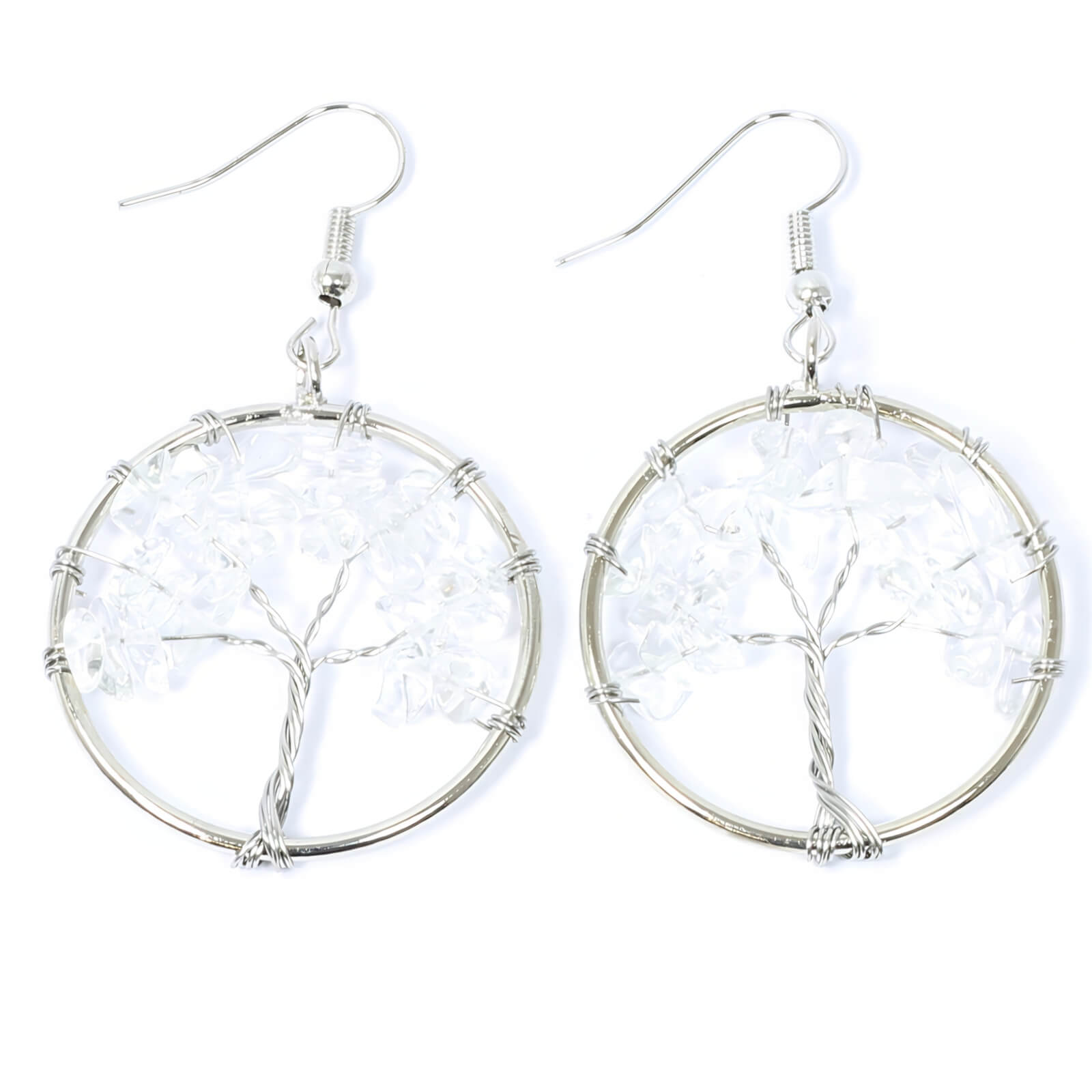 These Clear Quartz Tree of Life Earrings feature radiant, transparent clear quartz gemstones set in a stunning Tree of Life design. Symbolising clarity, healing, and spiritual growth, these earrings combine the powerful properties of clear quartz with the timeless beauty of the Tree of Life symbol. The crystal-clear tones of clear quartz are believed to amplify energy, enhance mental clarity, and promote overall well-being, making these earrings a perfect accessory for everyday wear or special occasions.