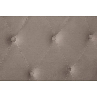 The Edison mink double ottoman bed has a brushed velvet upholstered headboard in diamond pattern tufting that creates an elegant visual appeal. Its rolled top is slightly curved from the sides to form a wingback style. The natural wood frame will provide long-lasting durability while padding across all sides gives it an aesthetically pleasing look.