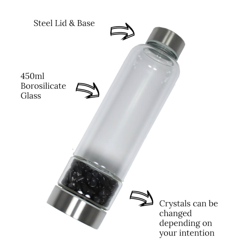 Glass Crystal Water Bottle - Black Obsidian for Protection and Cleansing