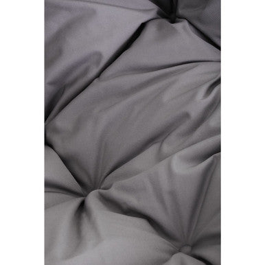 This double hanging chair has a wide seat that is crafted from black rattan effect weave and is furnished with dense foam filled grey cushions. The black metal frame complements the texture of the seat and offers stability. This garden chair is perfect for indoor and outdoor use.