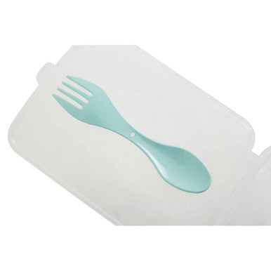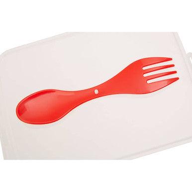 This lunch box with three spacious compartments allows packing of a variety of foods without them being mixed. Its functionality is increased by the spork and a lock for its cover.
