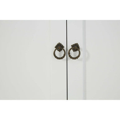 The Hampstead sideboard has four sliding drawers that are positioned beneath the oak wood tabletop, while a further four cupboard doors open to reveal generous storage space. Carved metal handles add a touch of formality to this piece, their dark colour counterpointing the sideboard's white wood.