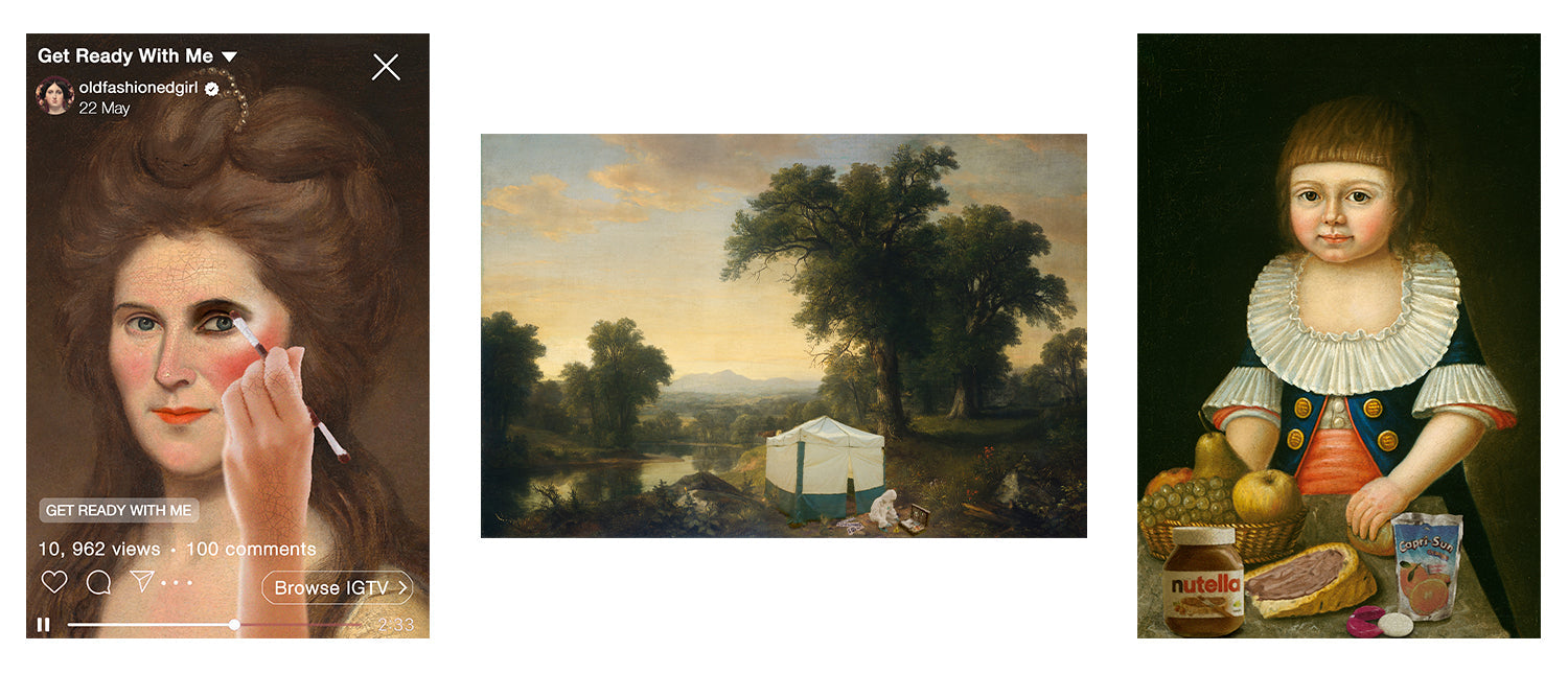 Lucy says ‘I prefer to raise a smile than challenge perception but having said that, I do like to create pieces which will hopefully get the viewer thinking. For example, I took an oil painting of a beautiful landscape and re-worked it so it had an old mattress, bags of rubbish and a broken washing machine strewn across the scene, with a sign nailed to a tree stating ‘no fly tipping’. The aim was to highlight what we often see when out for a lovely visit to the countryside, and to invoke feelings of repulsion.’