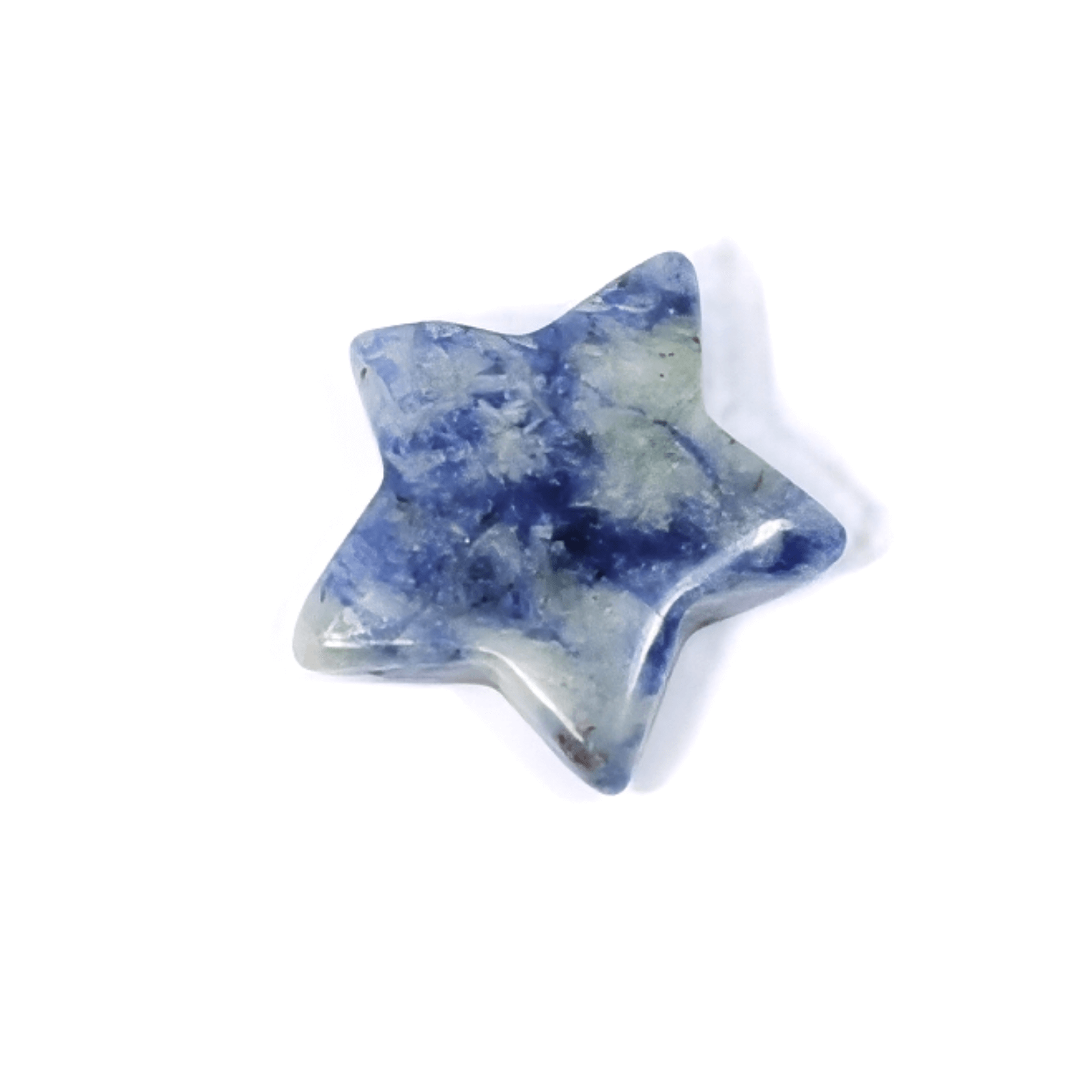 Unlock clarity and inner peace with our Sodalite Healing Mini Star Crystal. Carefully carved into a stunning 2cm star, this deep blue gem, veined with delicate white patterns, is a symbol of truth, wisdom, and emotional balance.