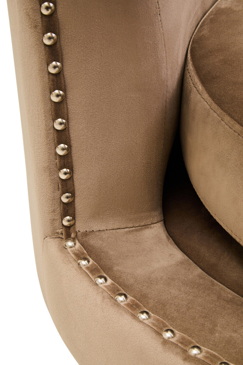 Refined metal stud detailing outlines the silhouette, while distinctive arm shaping offers an inviting, hug-like sit. Meticulous craftsmanship ensures a sturdy frame and a crisp, tailored finish that elevates living rooms, dens, and boutique-style bedrooms.