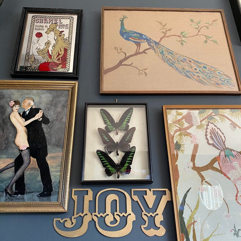 5" rustic distressed gold carnival JOY metal letters.