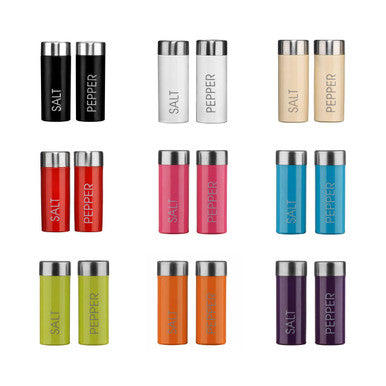 Both pieces are made from smooth enamel, and have a crisp white colour. Their tall, cylindrical design makes them easy to hold and shake. The grey salt and pepper lettering allows the contents of each to be quickly identified. Their removable lids are made from stainless steel, and have a satin finish that gives them a stylish brushed look.
