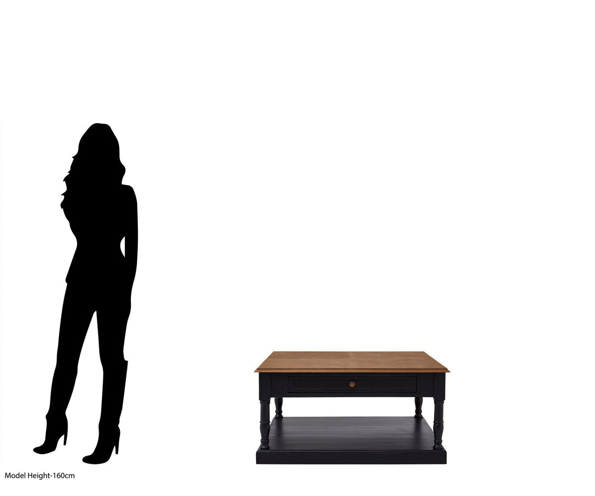 Made from natural bayur wood, this coffee table is a textured accent piece for the living room. Its top has a natural colour that highlights the wood's grain, contrasted by the sleek black legs and base. A slim drawer is integrated beneath the tabletop, adorned with a round, brass coloured metal handle.