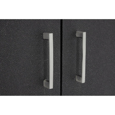 Combining sleek black and silver tones, this cabinet styles well with luxurious Boutique interior design settings. The polished stainless steel legs each form a rectangular shape, coordinating with the handles on each door.