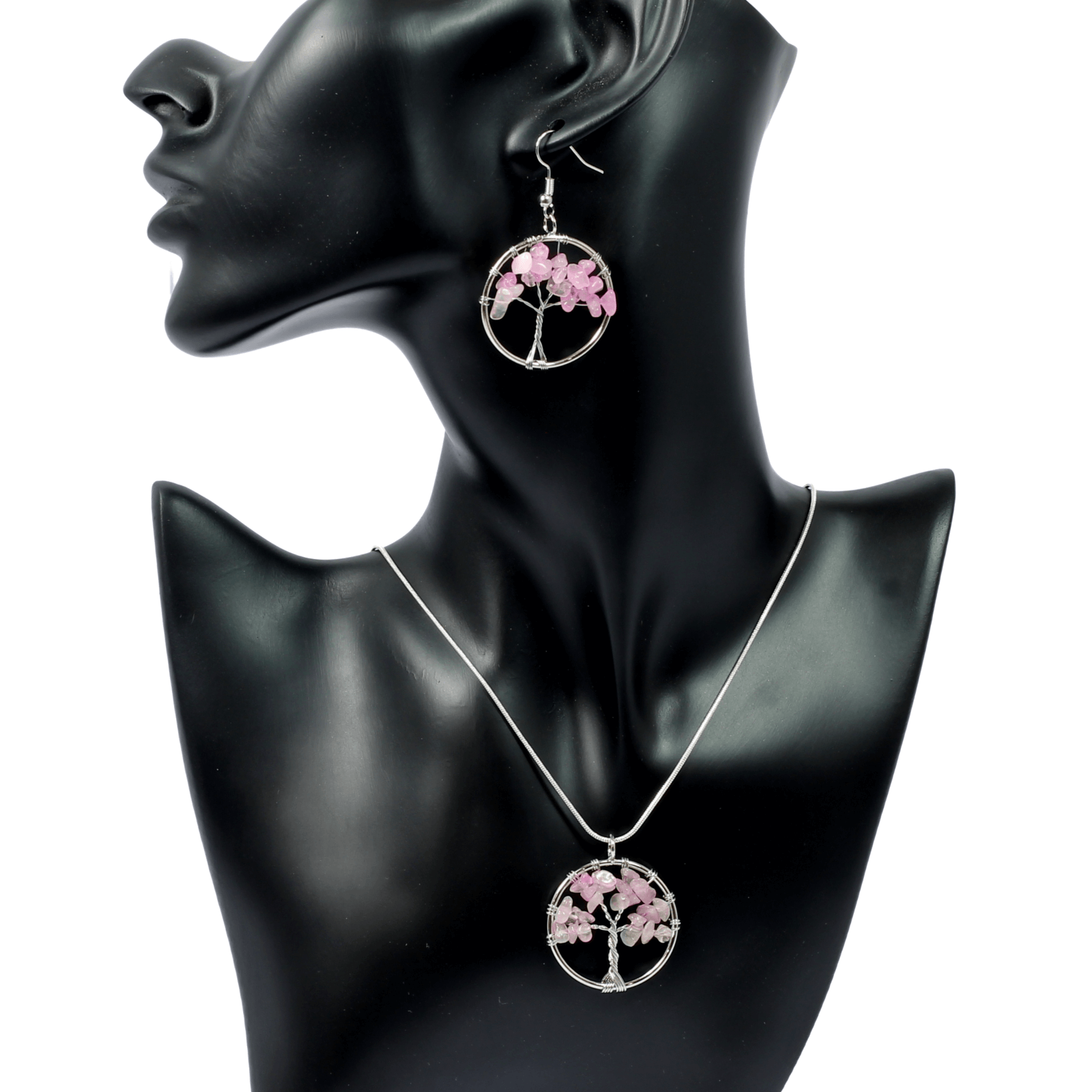 Rose Quartz Tree Of Life Jewellery Set (Necklace & Earrings)