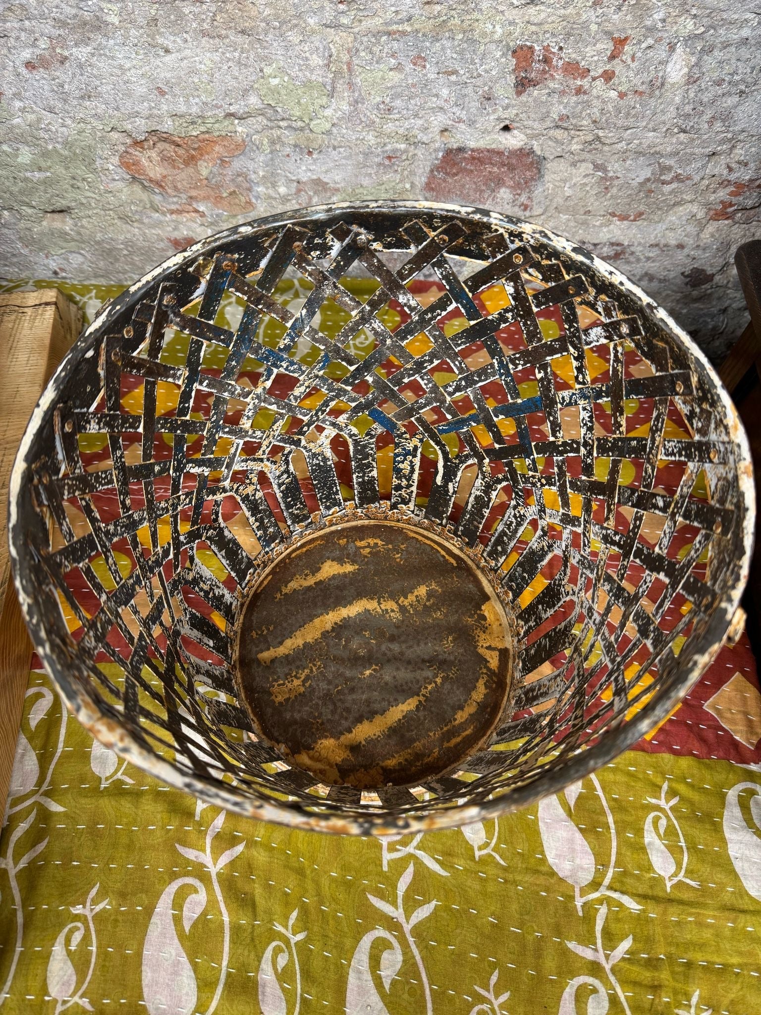 Add rustic charm to your home with this Handmade Rustic Reclaimed Metal Lattice Basket. Ideal for storing logs, kindling, or as a waste paper bin, its intricate lattice design enhances any decor. Perfect for stylishly organizing firewood or adding vintage flair, this sturdy basket combines functionality with eye-catching design. Don’t miss out—add this beautiful piece to your collection today!