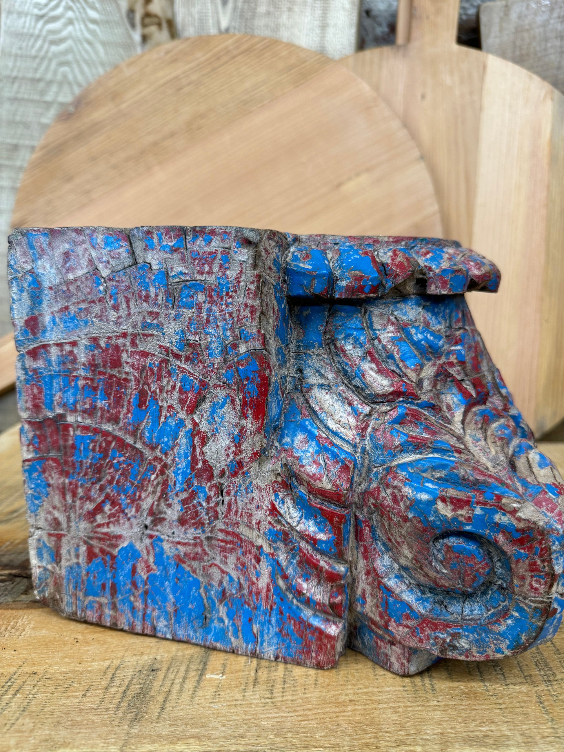 Add a touch of vintage charm to your home with this unique Indian pillar base church candle holder. Crafted from solid reclaimed wood in a rustic finish, this piece is solid and heavy, showcasing the craftsmanship of recycled antique architecture. The aged wood exudes character and history, making it a truly special addition to any space. Painted in a distressed finish using vegetable dye. Originating from India, this candle holder is not just functional but also a statement piece that will enhance the ambiance of your home. Candle not included. Dimensions are approximately