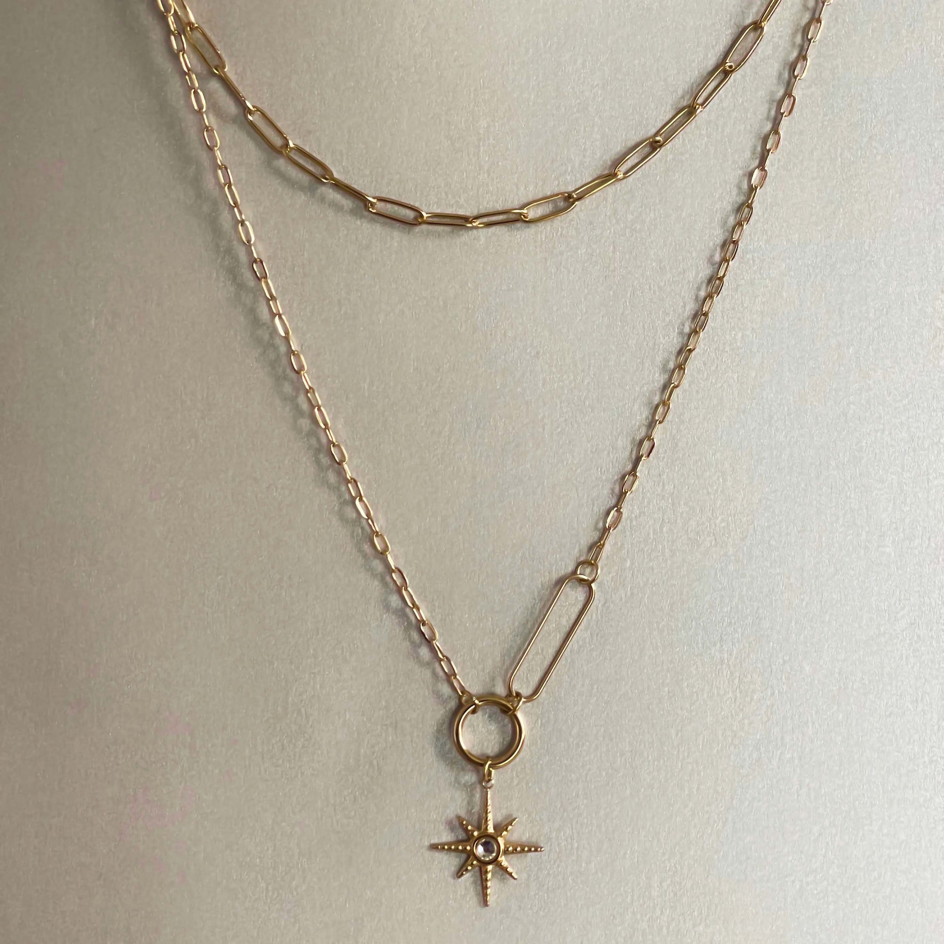 Made from durable stainless steel and finished with a luxurious 18k gold plating, the Sahara Luxe necklace is designed to resist tarnishing and maintain its shine over time. Its versatile design makes it suitable for both everyday wear and special occasions, adding a touch of refinement to any outfit.