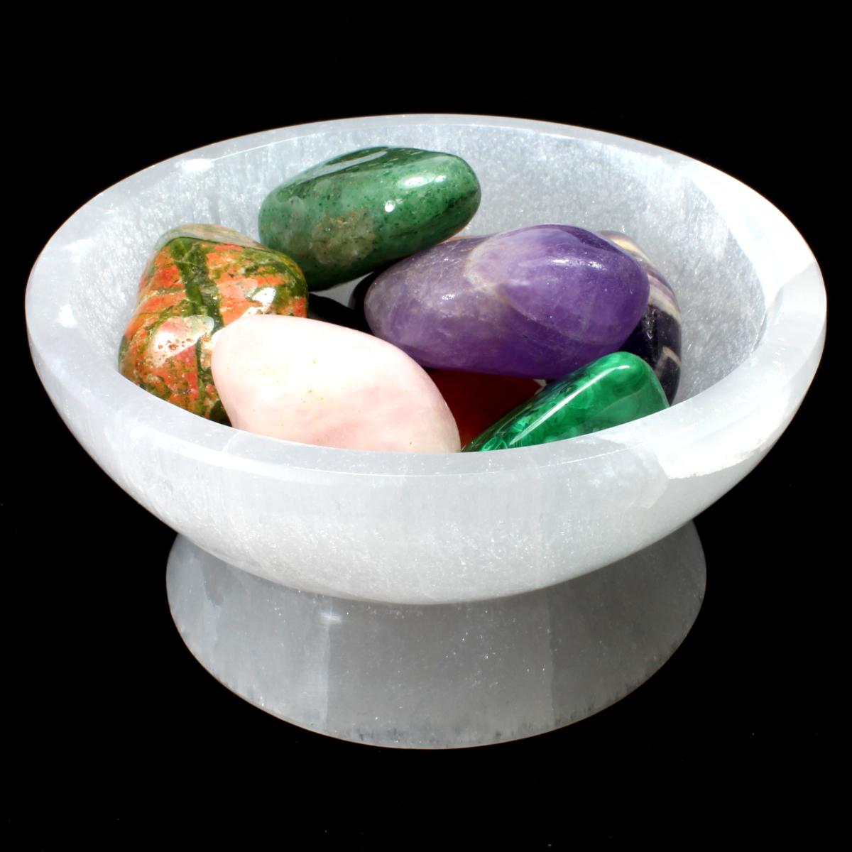 This must have cleansing bowl now comes carved with a stand. The cleansing bowl & stand is made out of Selenite. As Selenite cleanses other crystals, you can use this bowl to cleanse your collection by placing them inside it.