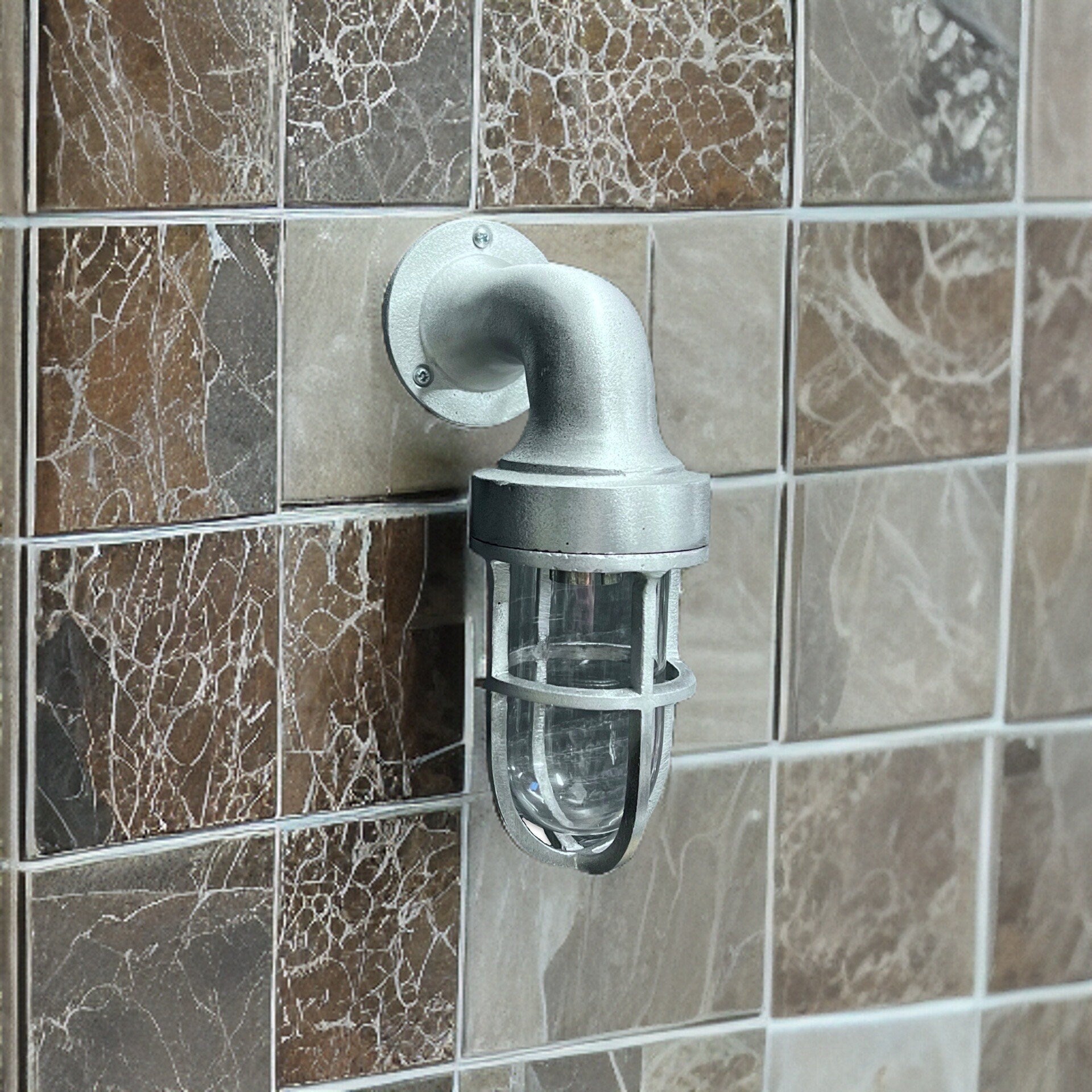 90 Degree solid cast with a solid cage, space-saving illumination while protecting the bulbs they house.