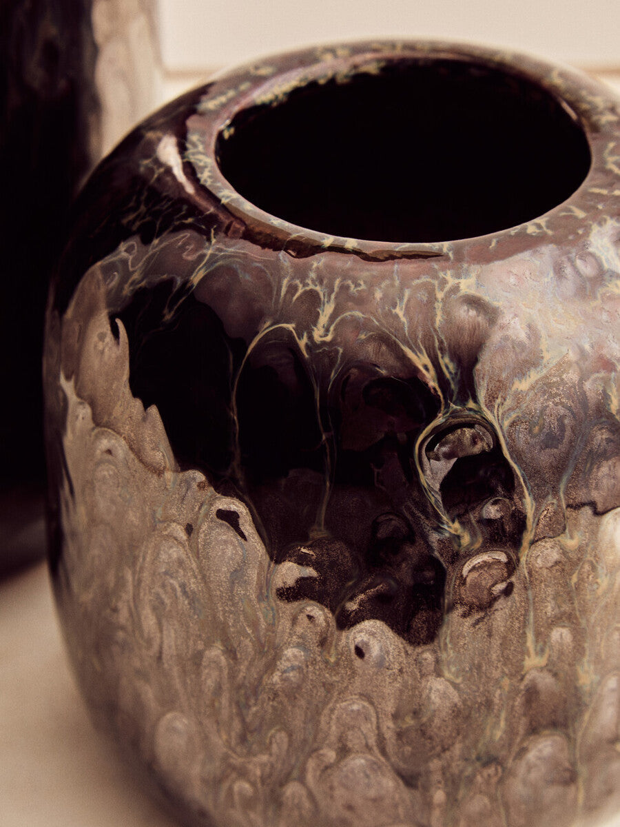 Elegantly crafted from robust stoneware, the Silas planter features an understated design with a round top and curved bottom. Complementing a variety of decor themes, this planter is given a dark blue reactive glaze finish which lends warmth to interoir decor.