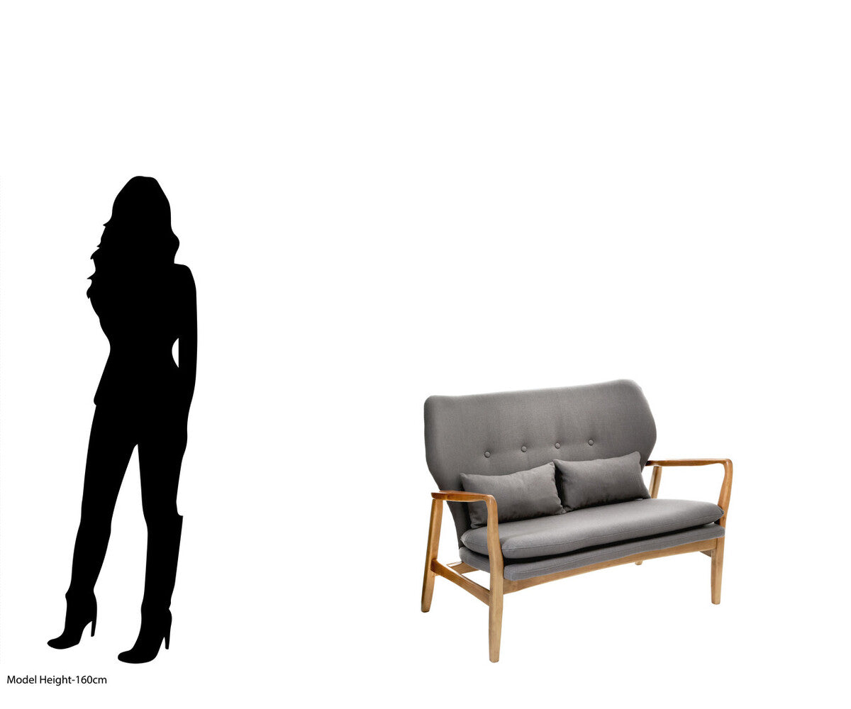 Stockholm 2 Seat Grey Sofa With Birchwood Frame