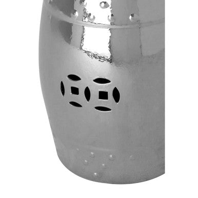 Chic in style, practical in use, the Complements ceramic stool will make a wonderful feature in your home. The barrel design of the stool is made from robust dolomite and given a silver finish.