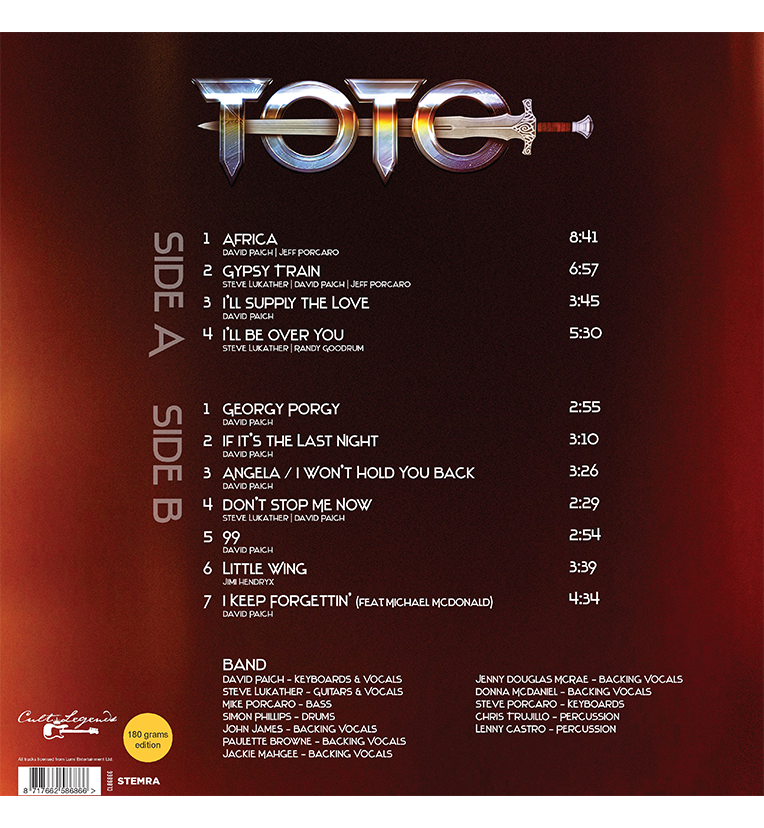 Featured here, is Toto’s smash hit Africa, alongside fan favourites such as I’ll Supply the Love and I’ll Be Over You, a superb cover of Jimi Hendrix’s Little Wing, and more.