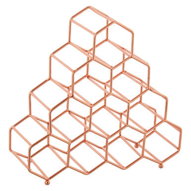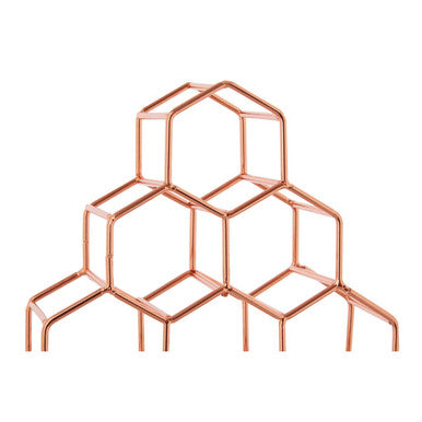 Made from sleek yet sturdy metal wires, this spice rack features 10 hexagonal sections which combine to form a honeycomb pattern. The geometric rack is finished in copper effect which lends it a luxe visual accent while contributing to the decorative appeal. Each angled space is designed to hold a standard-sized spice jar.