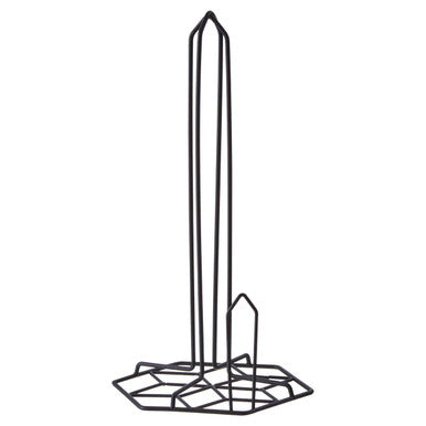 Crafted from metal wire, the Vertex Contour matte black finish kitchen roll holder ascends vertically from a geometric style base. The front brace raised parallel on its outer edge keeps the paper roll in place.