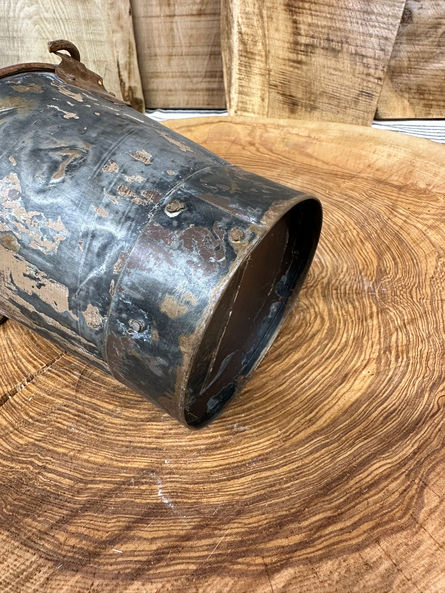 Crafted in the traditional style, these small buckets make charming plant pots for your windowsill or shelf. These vintage buckets from Rajasthan may differ slightly in size and shape from the ones depicted, as each one is one-of-a-kind and possesses its own distinctive character. They may exhibit signs of rust or patina, adding to their unique appeal.