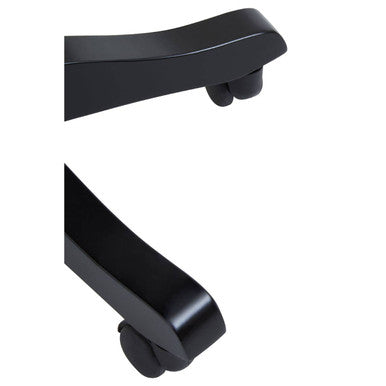This chair features a black leather effect padded seat with diamond pattern tufted back and studded detail trim at the front. Height adjustable with swivel action, the five-claw wooden base with castor wheels ensures swift mobility and stability.