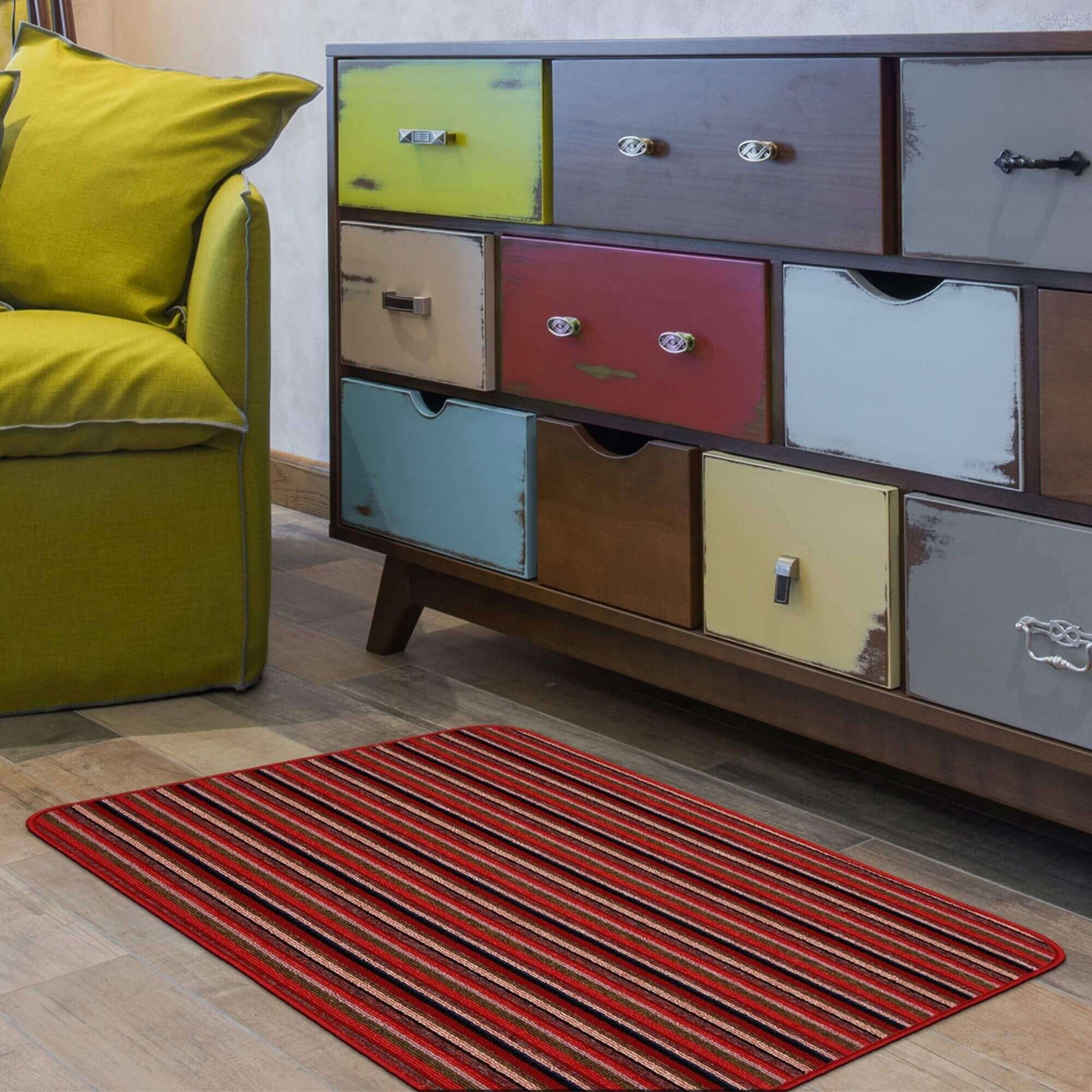 Style Tip: Ideal for kitchens, hallways, or utility rooms, these striped mats add a contemporary touch while keeping floors clean and dry.