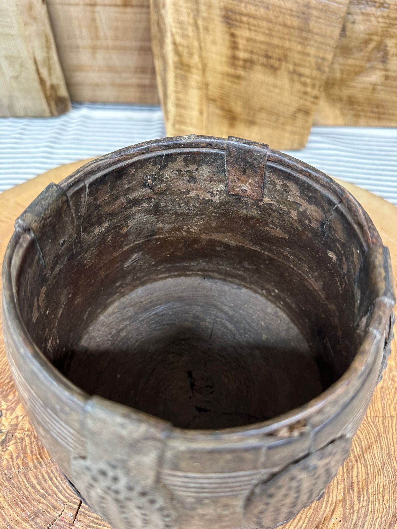 This old handmade wooden storage pot has been sourced from India and is perfect for keeping your kitchen organised. Could be used as storage space for your herbs, plants, stationary or cutlery.