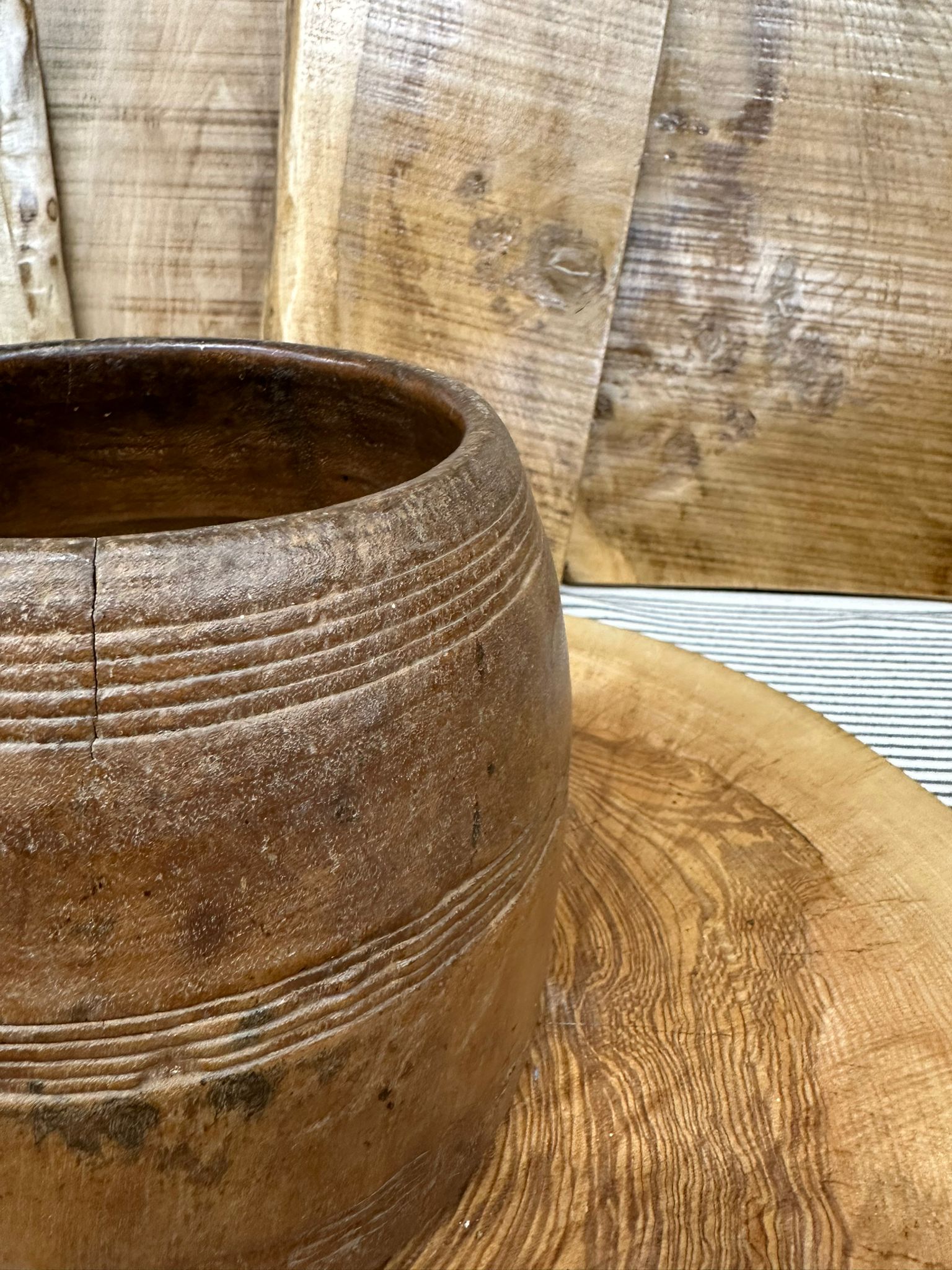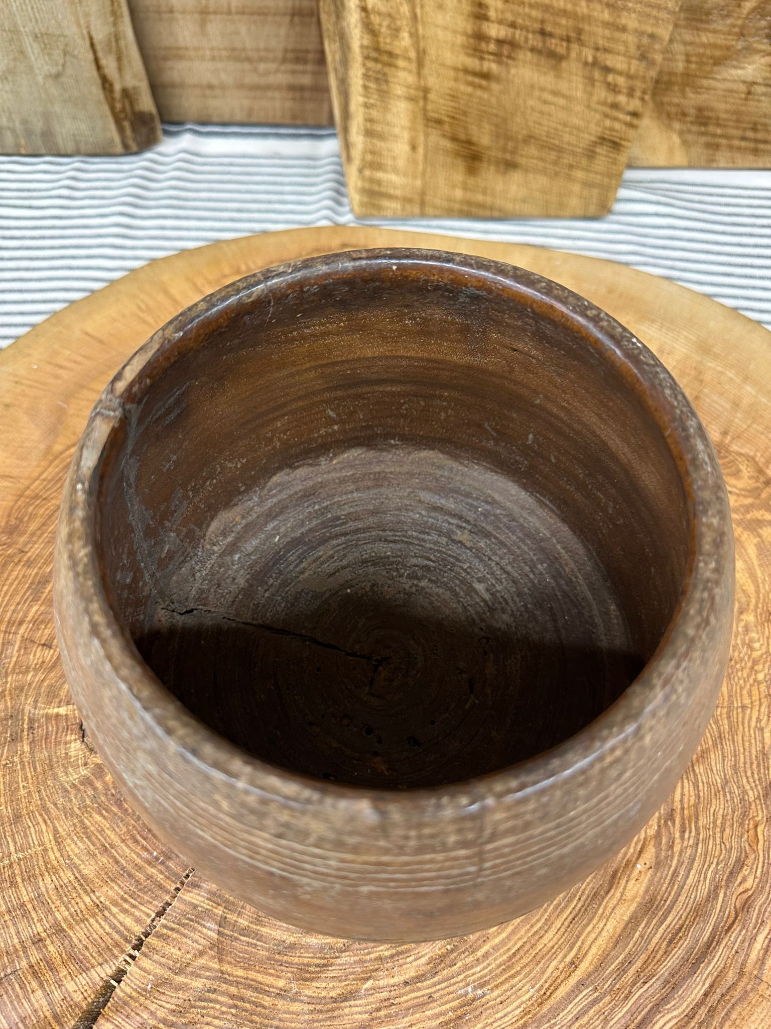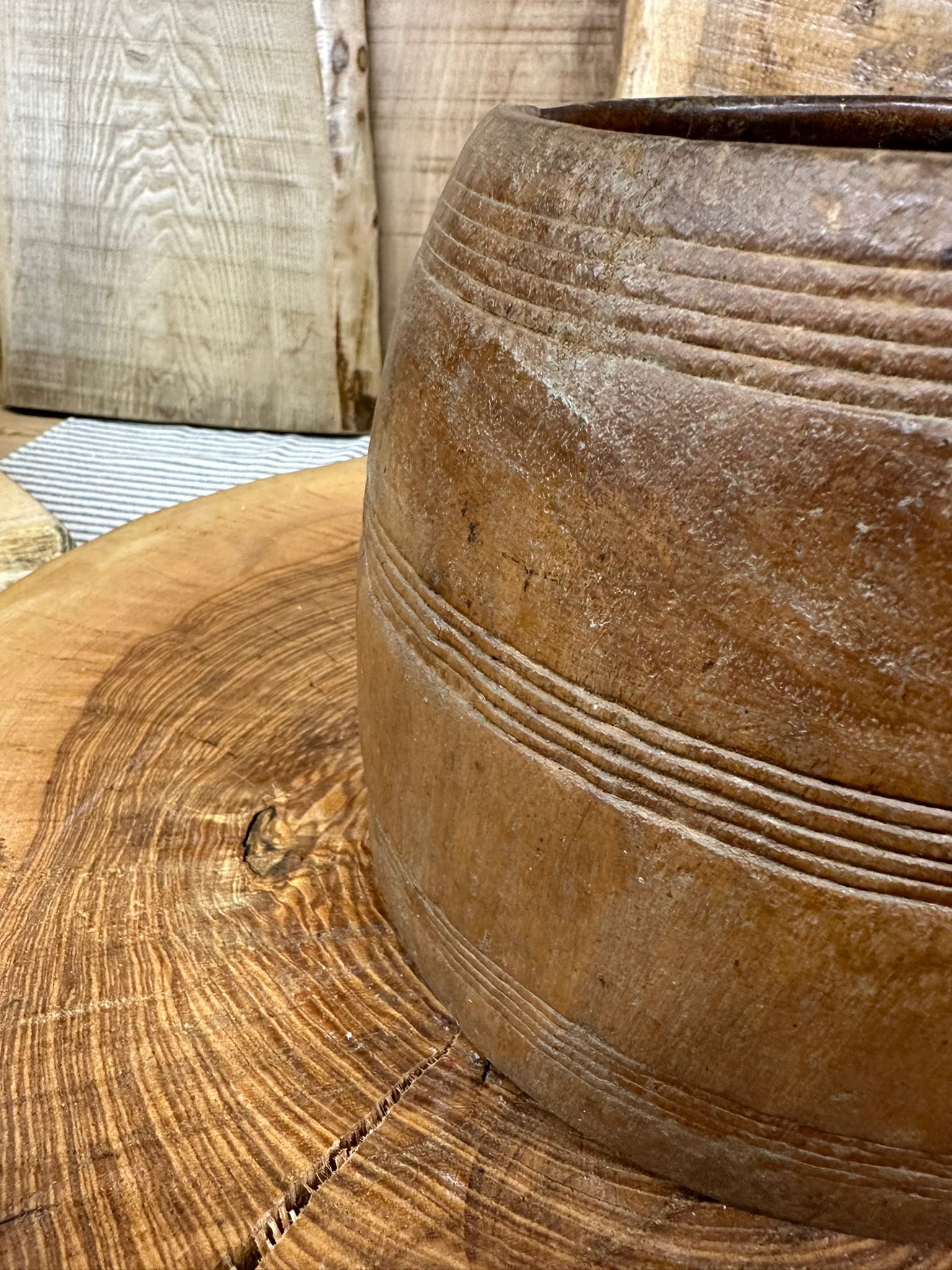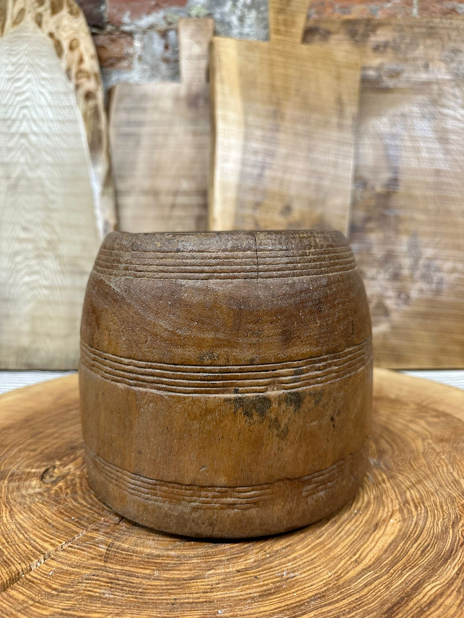 This old handmade wooden storage pot has been sourced from India and is perfect for keeping your kitchen organised. Could be used as storage space for your herbs, plants, stationary or cutlery.