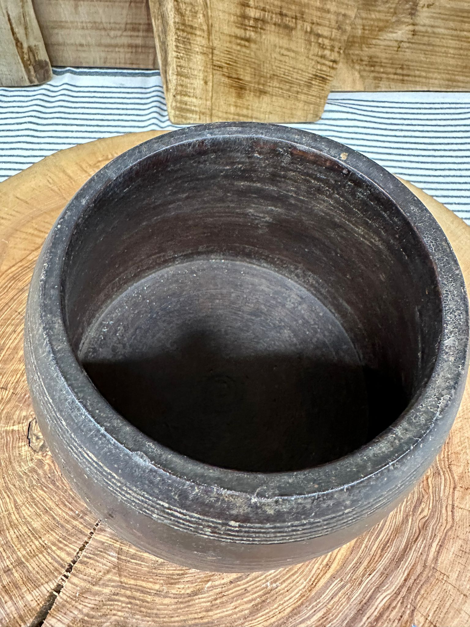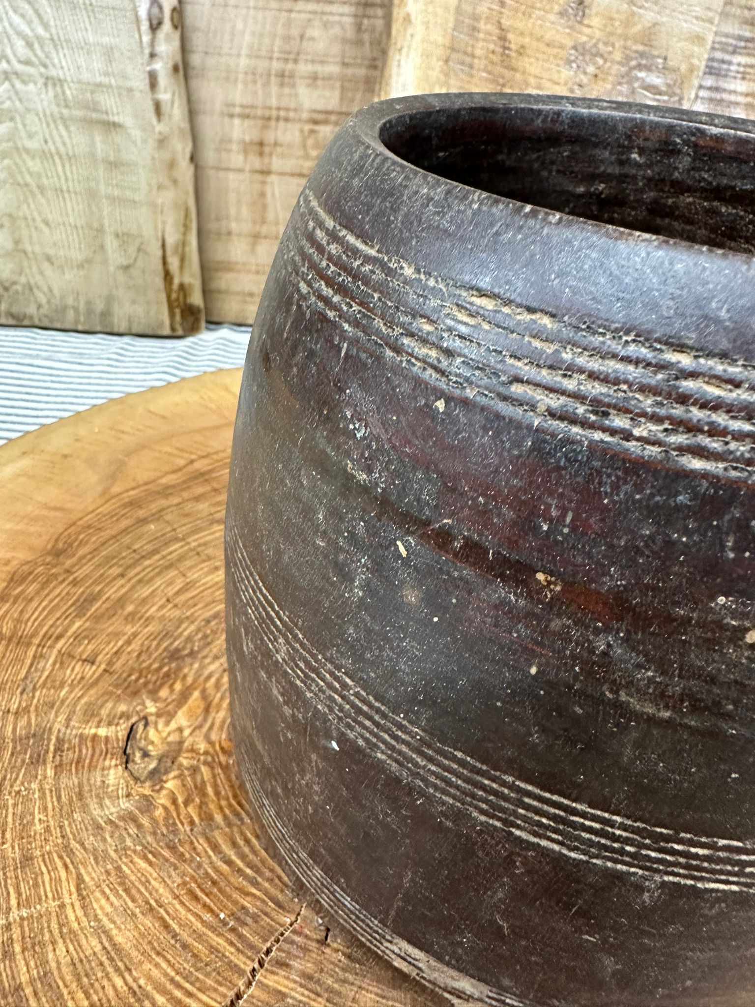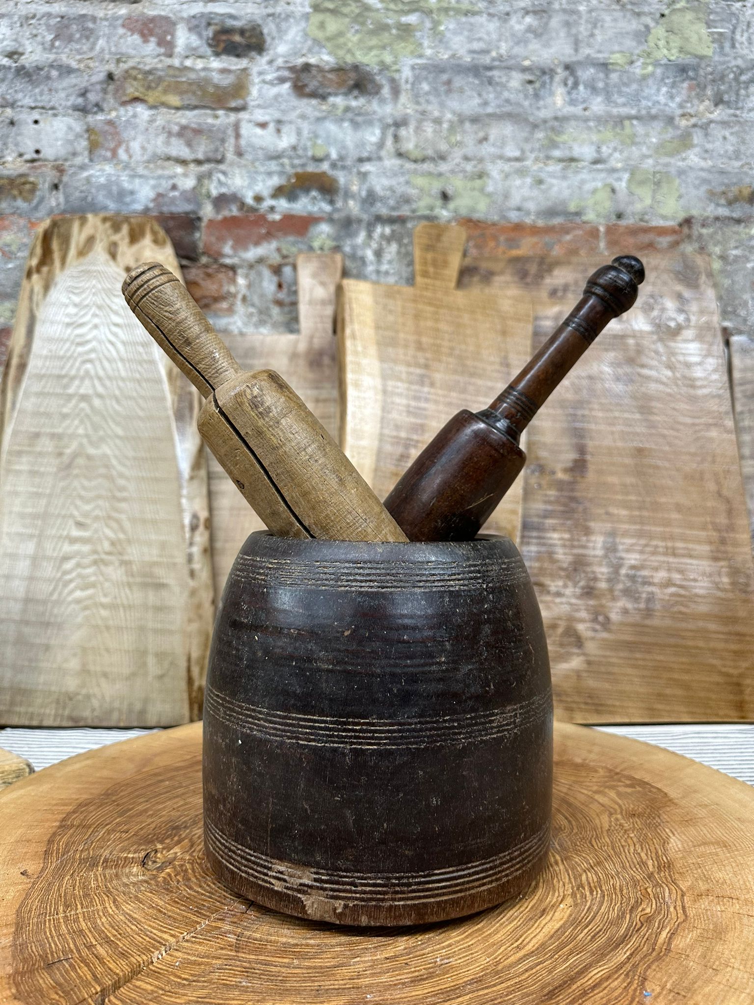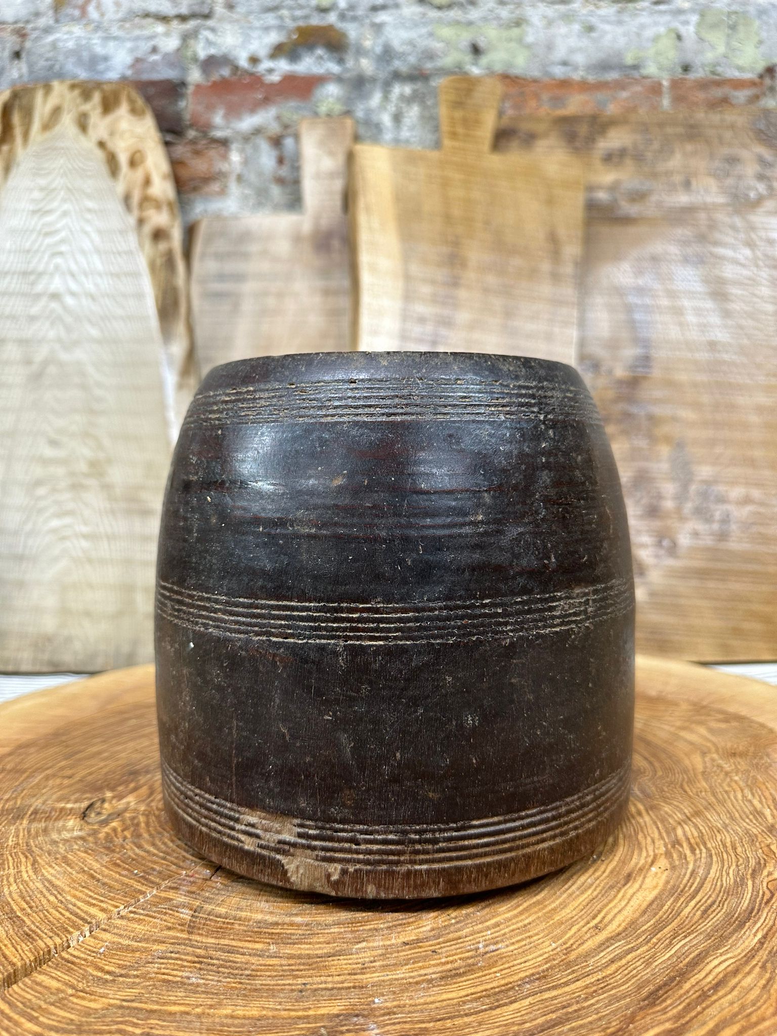 This old handmade wooden storage pot has been sourced from India and is perfect for keeping your kitchen organised. Could be used as storage space for your herbs, plants, stationary or cutlery.