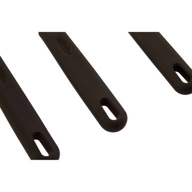 This five piece kitchen gadget set is a modern way to equip your kitchen. Crafted in strong stainless steel with gold finish and black grip friendly handles, this clever selection has everything you need - whisk, bottle opener, grater, pizza cutter and peeler. With handy holes for hooks so you can choose to hang your tools up to save space.